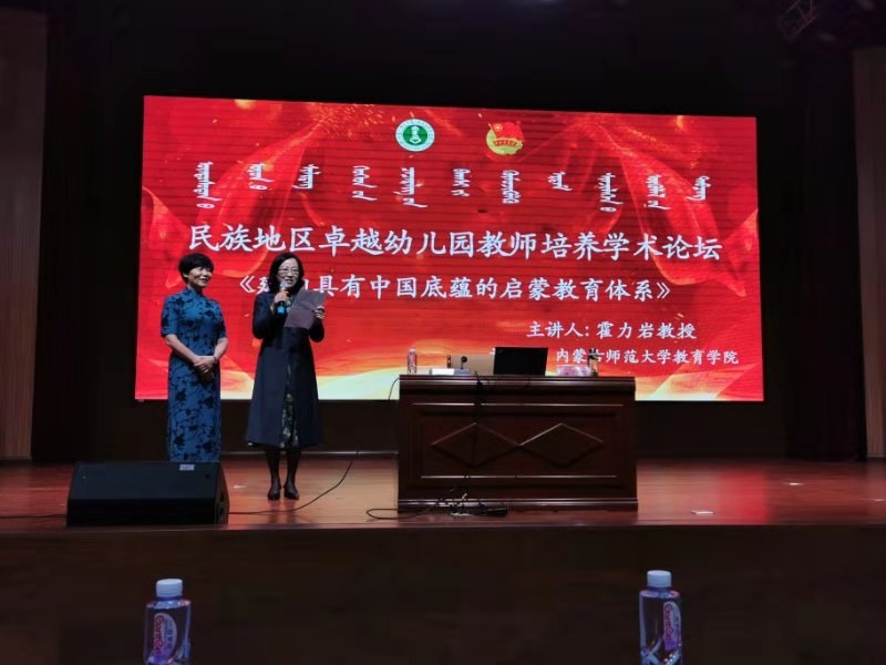 9月21日上午,我院在学校盛乐校区图书馆二楼报告厅成功举办了“民族地区卓越幼儿园教师培养学术论坛”。本次论坛的主讲人是北京师范大学教育学部学前教育研究所的霍力岩教授,论坛主题为“构建有中国底蕴的启蒙教育体系——兼谈迈向‘深化改革规范发展’之‘办好学前教育’新时代”。论坛由内蒙古师范大学民族地区卓越幼儿园教师培养项目负责人朱晓红教授主持,学院相关教师、本科生、研究生以及基层幼儿园领导和教师代表等参加了本次论坛。