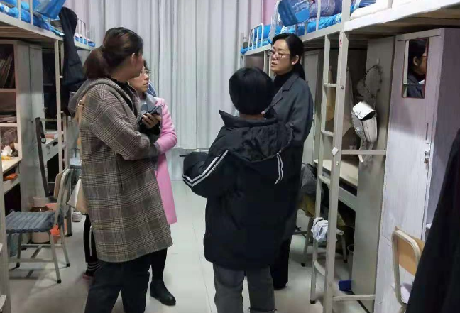 在检查过程中,王利副书记以及各位老师详细询问了学生的住宿情况,了解学生的生活和学习情况,并对宿舍插座的使用、阳台堆积的杂物、违规电器使用等可能存在的安全隐患进行了仔细排查并且对宿舍安全进行了现场指导。
