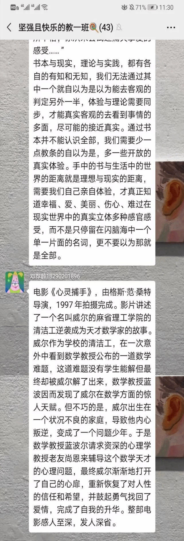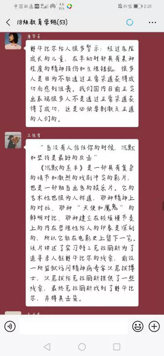 习近平总书记明确强调“动员各方面力量,全面加强心理疏导工作”,通过此次活动,同学们不仅在影片中舒缓了压力,缓解了由疫情带来的紧张情绪,还在交流讨论中敞开心扉,畅所欲言,提高了心理调控能力和防疫能力,为自己构筑了一道坚实且牢固的抗疫心理防线。