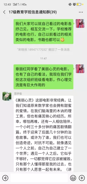 在5·25”心理宣传月之际,为做好我院心理防控及危机干预工作,帮助广大学子培养抗击疫情过程中的良好心态,我院组织各团支部召开线上观影主题班会,展开观影心得交流讨论,帮助同学们舒缓心情,提高情绪调节能力。