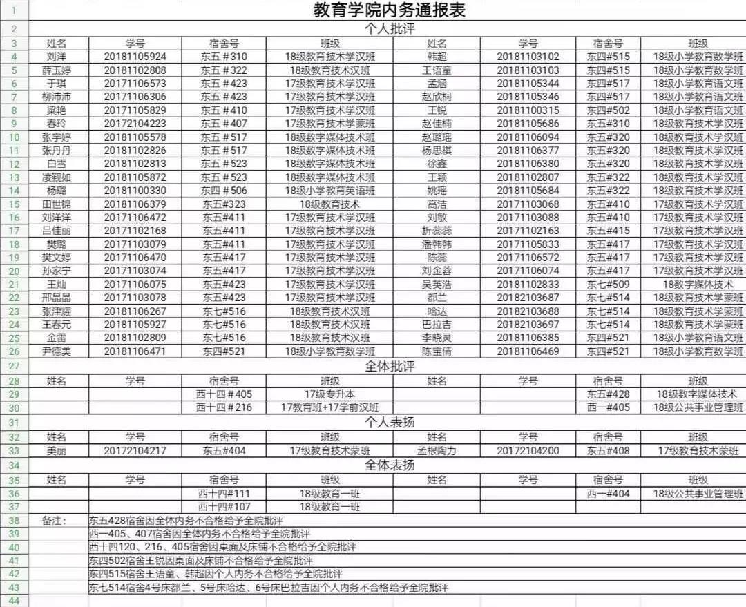 教育学院内务通报表