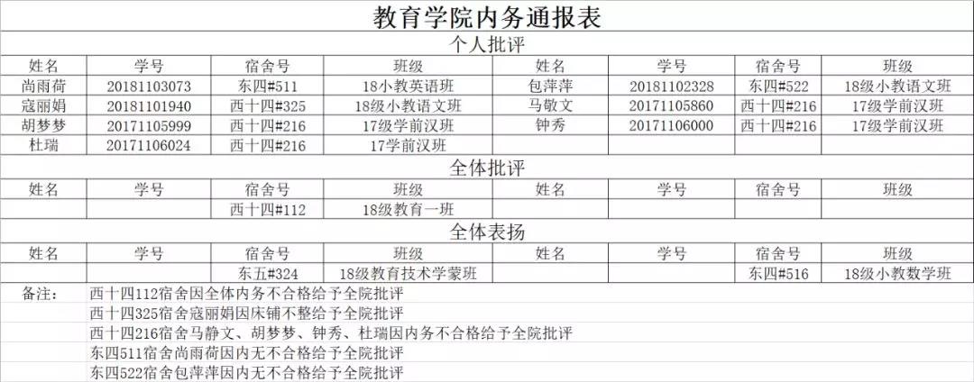 教育学院内务通报表