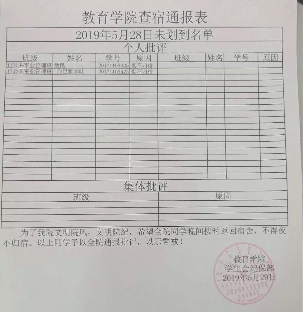 教育学院查宿通报表