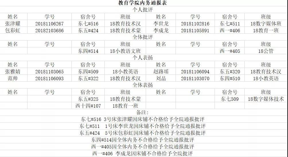 教育学院内务通报表