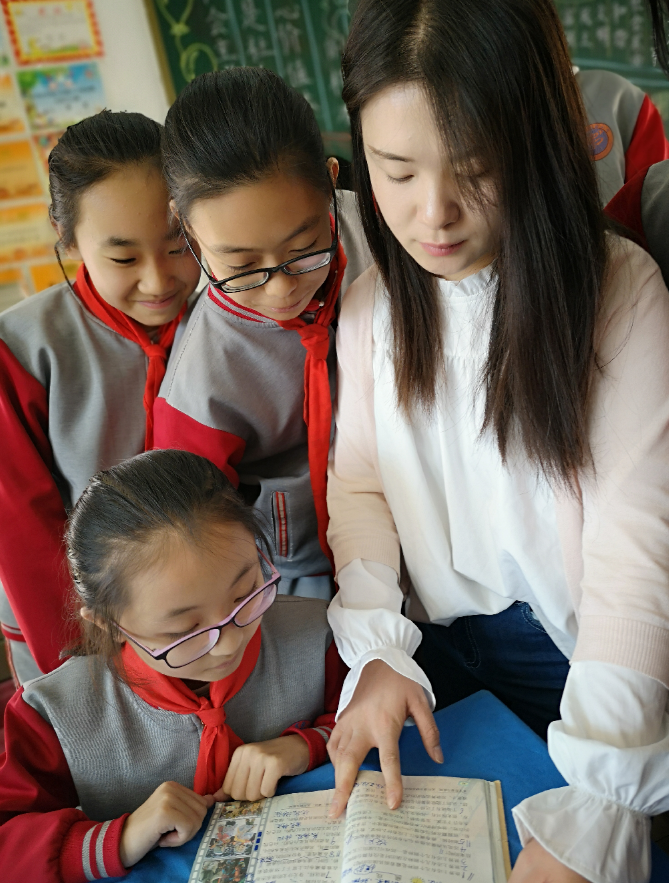 光阴似箭,不知不觉来到乌海市海勃湾区第五小学已经一个月了。在这段时间里,我拥有了人生好多个第一次:第一次以老师的身份正式站上讲台,在四十多位孩子们面前强忍紧张、兴奋,带着微微的颤音领读单词,故作镇定地讲授课本知识;第一次听到孩子们用稚嫩的声音称我为Miss Yan;第一次将三大摞练习册一本一本判完,看着自己用红色钢笔打的日期,成就感油然而生。(图一、二、三)
