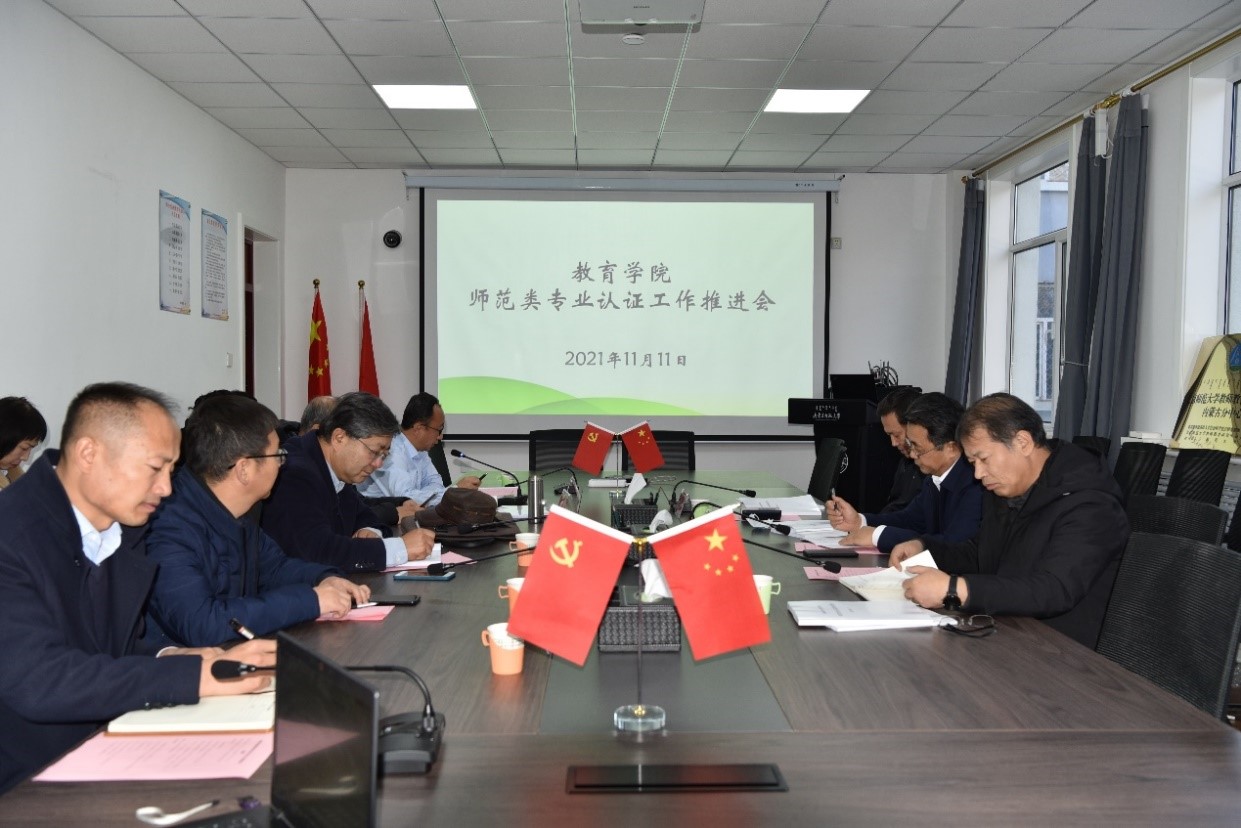 教育学院学前与特殊教育系主任朱晓红汇报了学前教育专业师范认证工作进展。米俊魁院长就教育学院认证工作整体安排、推进情况和下一步的重点工作做了汇报,进一步强调师范类专业认证工作对学院本科建设发展的重要性。铁木尔书记从加强学习交流、各部门协同配合等方面做了工作动员。