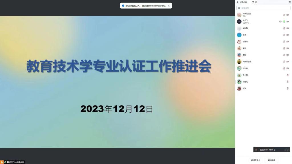本次会议采用线上方式进行,会议由杨日飞副院长主持,教育技术学专业全体教师参加了会议。