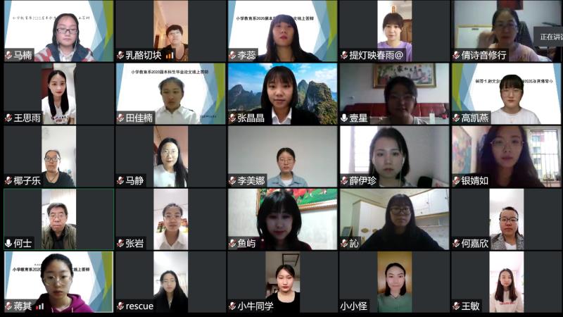 根据学校疫情防控期间毕业生相关工作要求,教育学院2020届本科毕业生进行在线论文答辩。教育学、学前教育、教育技术、小学教育、特殊教育和公共事业管理等专业在57日到59日三天陆续举行答辩会,先后有570余名本科毕业生参与答辩。