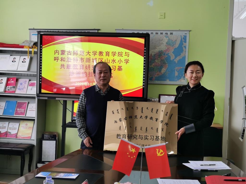 我院院长米俊魁教授与呼和浩特山水小学副校长格根苏布达签约并授牌