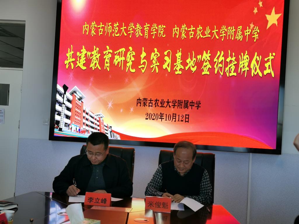 我院院长米俊魁教授与内蒙古农业大学基础教育中心主任李立峰签约并授牌