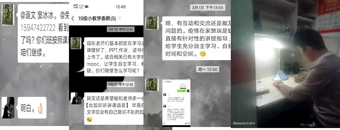 停课不停学这简单话语的背后无疑是无数老师们的付出与努力,作为18学前班的学习委员,我无疑充当了师生之间沟通的桥梁,这也使我能够有机会切身体会到到停课不停学背后老师们的付出与努力。张玉梅老师教授我们学前儿童科学教育这门课程。尚未接近原定开学日期时,张老师便考虑到学生的学习问题,她很早便与我联系,讲述她的授课构思,同时寻找合适的教学平台为大家上课。连续几天,张老师为了试验授课软件的性能,而从上午忙到下午一两点钟,最忙的时候,连午饭都来不及吃。在正式试课的前一天夜里,接近凌晨,张老师还在做试播工作,而这一切努力都是为了让同学们获得更好的学习体验。