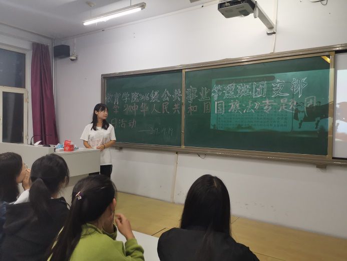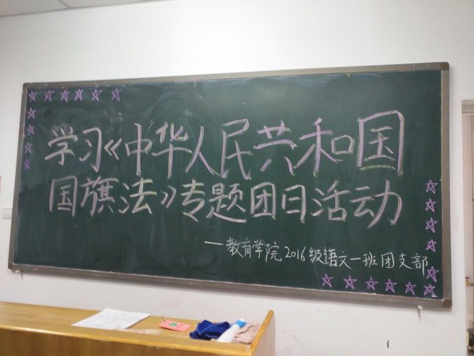 为迎接新中国成立70周年,纪念五四运动100周年,提升我院学生的家国情怀和时代精神,增强我院学生的责任感和使命感,教育学院各团支部特于2019年9月19日开展学习《中华人民共和国国旗法》专题团日活动。