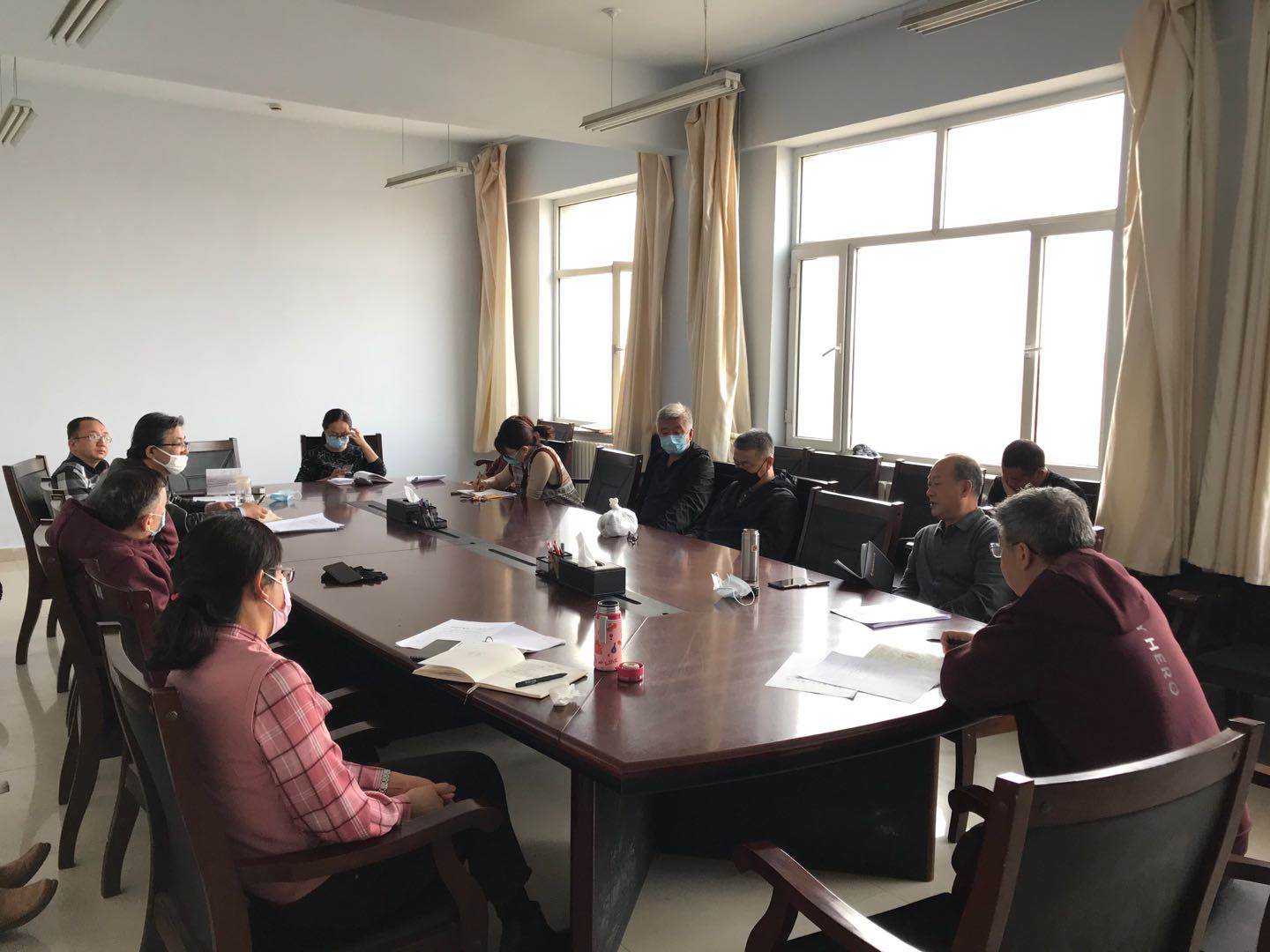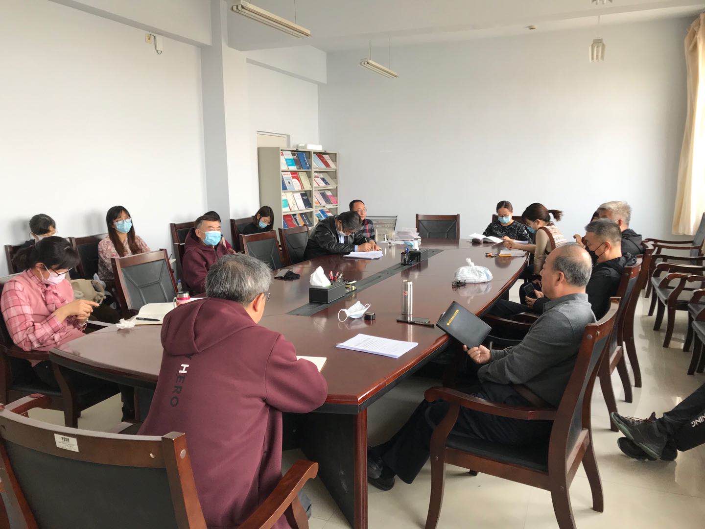 3月31日上午,我院在学院楼B区417会议室召开疫情防控工作会议,参会人员有院党委书记铁木尔、院长米俊魁、副书记兼副院长王利、副院长何士、副院长边琦以及全体行政教辅人员。