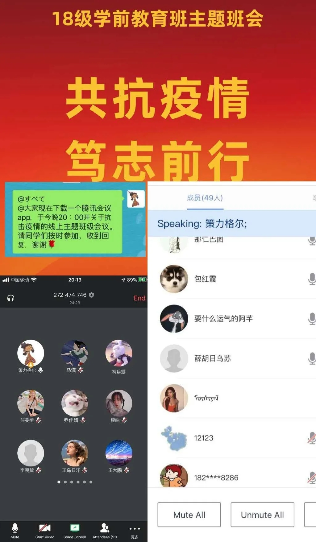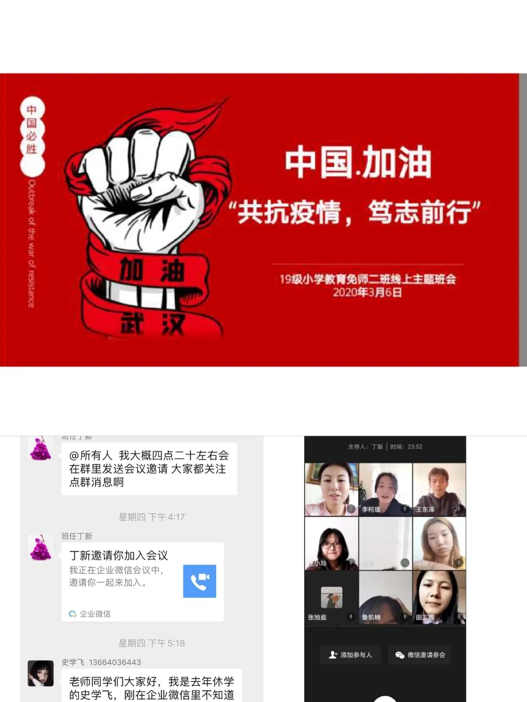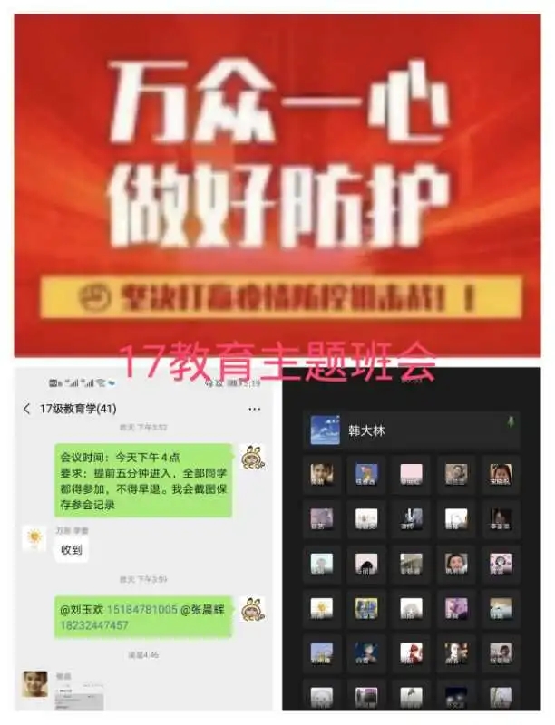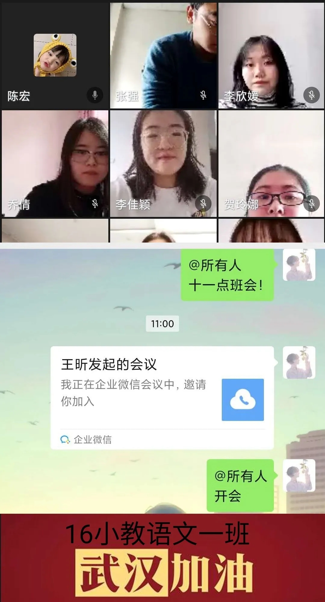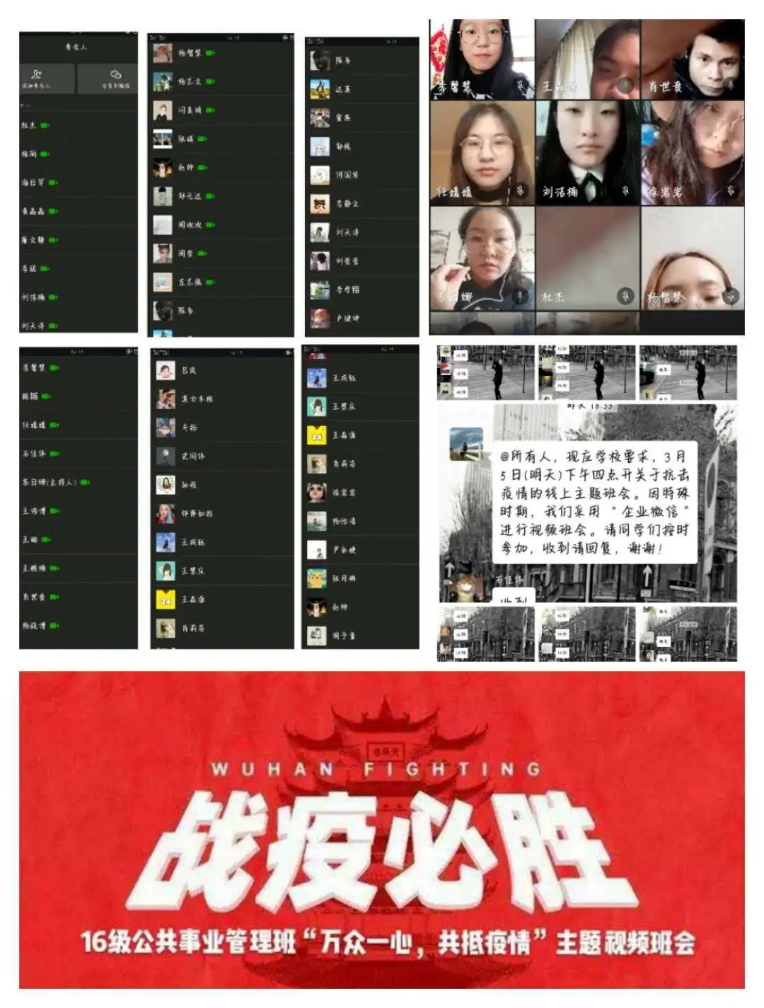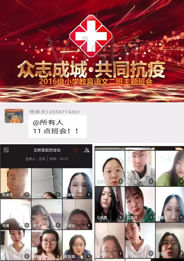 为深入贯彻落实习近平总书记关于打赢疫情防控阻击战重要指示批示精神,保障防控疫情期间停课不停学,充分发挥网络育人功能,根据自治区和学校有关工作部署,教育学院各班级组织召开共抗疫情,笃志前行为主题的疫情防控线上班会。