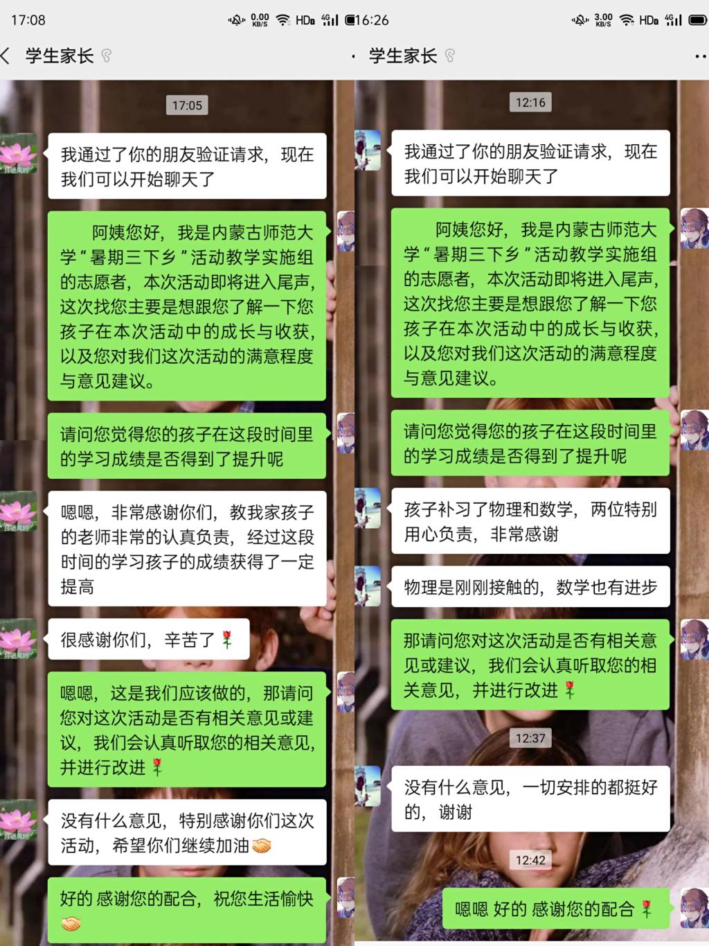 为了更好地了解本次2020暑期云端“三下乡”实践活动中的教学开展效果以及存在的问题,教学实施组的工作人员对学生家长进行了回访。工作人员针对学生学习效果、取得的进步和改变、以及家长对本次活动的建议等问题进行回访了解。