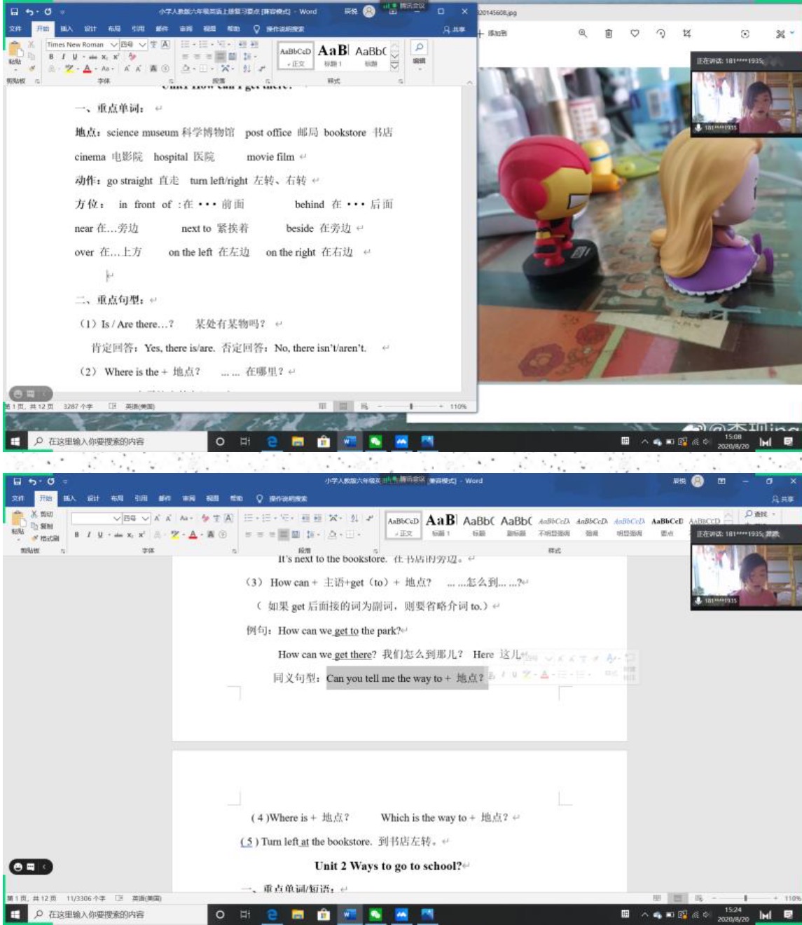 课程已接近尾声,在我和另一位同学的共同努力下,已为同学铺垫了一个扎实的知识基础。今天和明天的课主要对于六上的单词和知识进行复习。因为同学已有较好的基础,今天进度很快,本节课复习了三个单元的知识。重点通过玩具位置的摆放不同来复习方位介词和短语,通过造句对话复习指路,日常活动和一般将来时等等。也介绍了情态动词的用法和不同情态动词表达的语气强烈程度;否定祈使句等等知识,帮助学生拓宽了知识面。