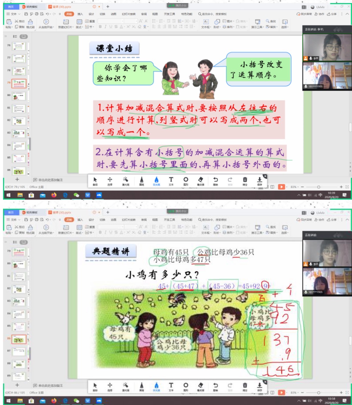 教育学院三下乡志愿实践活动于八月份开展至今,已历时20日,大部分工作已接近收尾,兴趣组的志愿者们仍按照教学计划按部就班地为学生们进行线上授课。志愿者们为学生讲解包括加减混合运算,英语音标、句式时态、发音规范等知识点,根据几次授课情况,志愿者们进行教学反思,发现学生问题、改进教学方式,师生共同交流成长、互帮互助。
