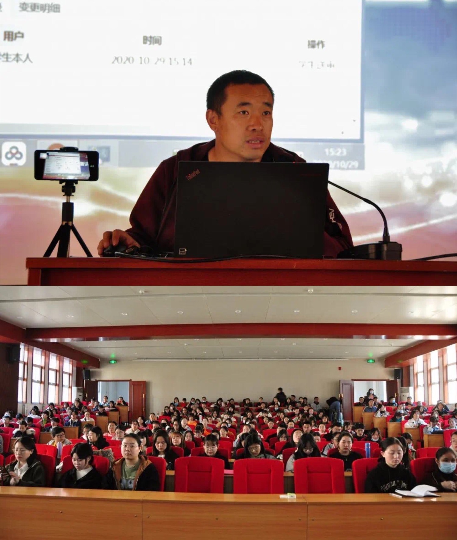 20201029日,教育学院在科技楼一楼报告厅开展毕业生就业指导专题讲座。此次讲座由学工组于国佳老师与苏日娜老师主持。