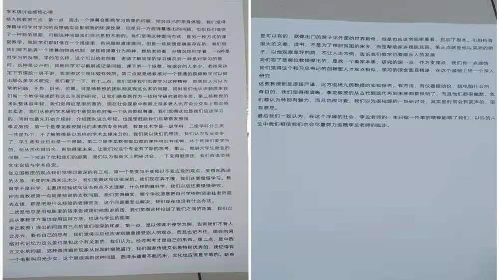 2020年11月23日,2020级教育技术学班就新时代教育技术学科建设暨李龙教授从教六十载学术研讨会进行交流心得体会。