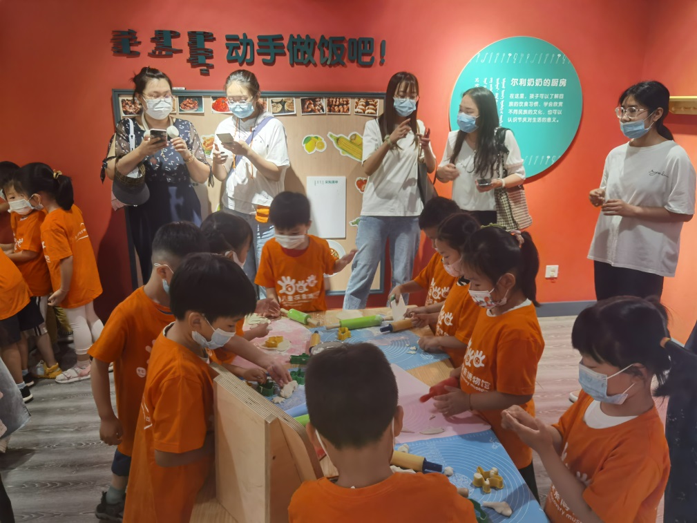 本次活动的第一站是老牛儿童探索馆,在老牛儿童探索馆附属幼儿园周丽英园长的带领下,老师们观摩了中班幼儿在“尔利奶奶的厨房”中进行的自主游戏,游戏的主题为“制作面食”,全体幼儿主动参与游戏过程,充分利用游戏材料展开游戏,积极与同伴和教师交流互动,获得了愉快的游戏体验。