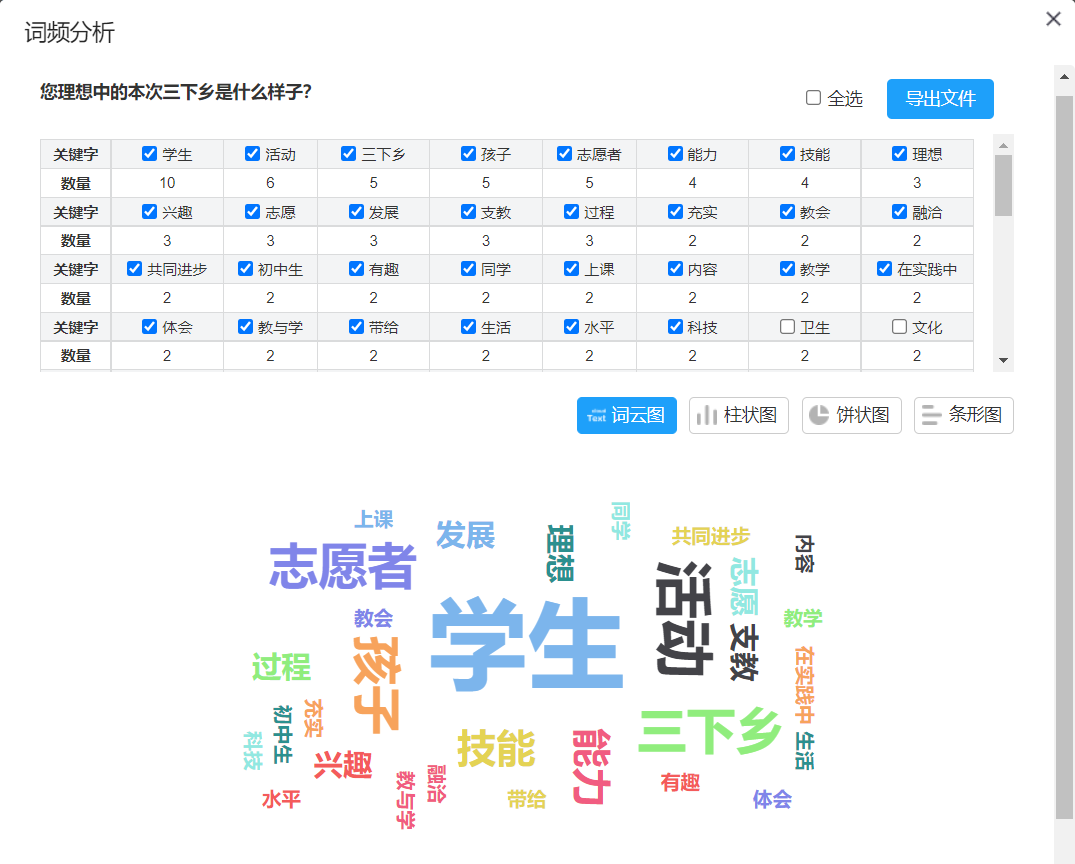 通过本次以调查问卷方式前期工作的开展,志愿者们对本次“三下乡”都有了更深入的了解,也清晰了自己哪些方面的不足,希望通过前期准备工作,志愿者们能够发挥自身优点,弥补身上不足,更好地完成本次“三下乡”活动,并在其中获得成长。