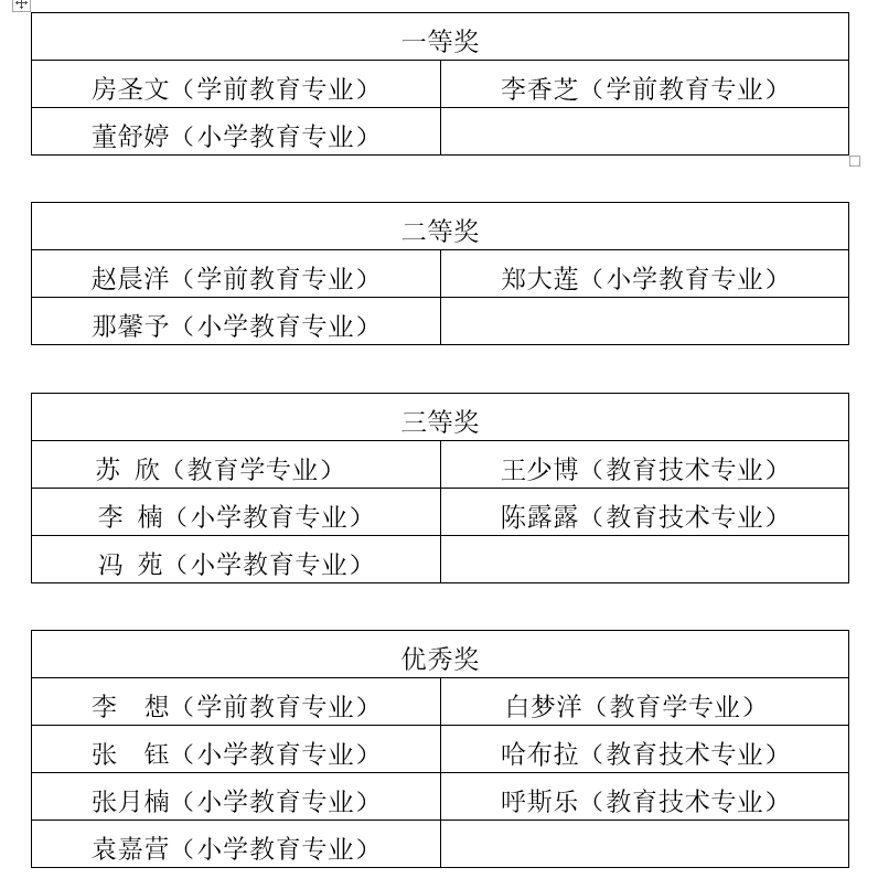 内蒙古师范大学第十一届教师技能大赛 教育学院获奖情况