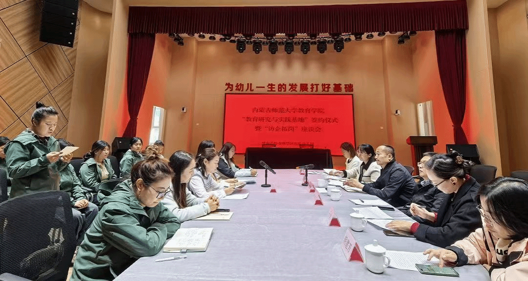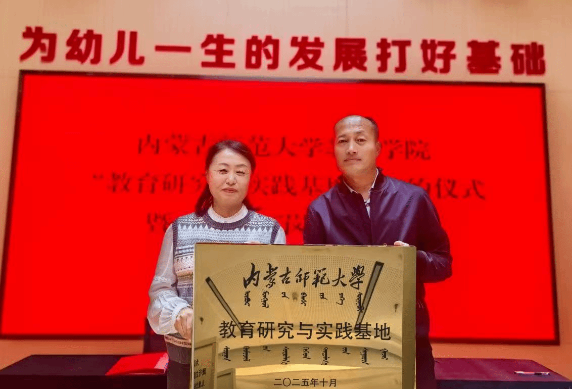随后,双方共同签署了“内蒙古师范大学教育研究与实践基地”合作协议,并举行了隆重的授牌仪式。此次签约标志着双方构建起稳定的教育研究与实践合作关系,为创新学前教育人才培养模式搭建起重要平台。